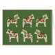 Este cartão é feito de 3 cavalos de madeira, desenhados, talhados e pintados por Julia Morrill