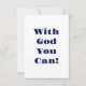 Esta placa de saudação tem uma fonte preta de hatton impressão com letras brancas com o verso da bíblia "Ats 10:7 KJV" sobre um fundo azul de marinho. Este verso está referindo o Livro dos Atos 10º capítulo mostrando o verso 7 neste tema de citação da bíblia do Rei James bíblia com as palavras "Com Deus Você Pode!" nas costas. Feita com impressão colorida de alta qualidade em um papel de 3,5" x 5" (retrato) ou 5" x 3,5" (paisagem), feito e impresso nos EUA.