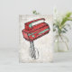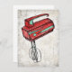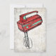O Electric Hand Mixer apresenta um liquidificador vintage da cozinha em vermelho com um jato branco, aqua e preto sobre um fundo branco angustiado.