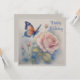 Belo cartão de aniversário de flores e borboletas. Pintura aquosa, cores macios, de pinks e blues. Um cartão de aniversário único que certamente será um prazer para essa pessoa especial em sua vida.