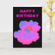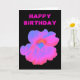 Esta carta de boas-vindas apresenta uma fotografia de uma flor de Nasturtium. A foto foi colorida artificialmente, resultando em uma flor rosa brilhante com alguns tons azuis misturados. O fundo preto proporciona um contraste encantador. Há um texto cor-de-rosa personalizável sobre a flor, na parte externa do cartão, que diz "Parabéns", mas pode ser mudado para se adequar a outras ocasiões. O dentro da placa é vazio.