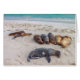 Estes são leões marinhos das Ilhas Galápagos, descansando na praia numa manhã confortável de novembro.
