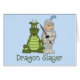 Cavaleiro Bonito em armadura segurando uma espada com dragão verde sentado ao seu lado e as palavras "Caçadora Dragão".