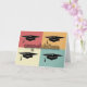 Envie ao seu formando uma palavra de parabéns com este cartão de saudação de graduação moderno. dentro de vazio para que você possa adicionar suas próprias palavras de apreciação, sabedoria e conselho. O colorido design apresenta quatro bonés de formatura com quatro quadrados como fundo. Linhas de stripe de pinos modernos adicionam textura à placa.