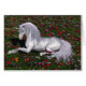 Um belo unicórnio de estábulo se estabelece em um campo de flores e borboletas para um descanso.