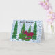 Os pinheiros majestosos e um dragão vermelho e verde ficam em frente a um fundo de neve. Personalize com sua saudação de Yuletide.
