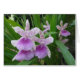 Orquídeas em um cartão de nota para desfrutar como está ou personalizar para convites e mensagens de ocasião especiais. O dentro da placa tem um pincel de lavanda. Um conjunto de cartões de nota faz um belo presente. Envio correspondente disponível.