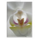 Cartão com o atordoamento por perto de uma flor branca de orquídea com dentro amarelo e rosa