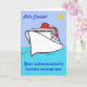 Personalize a frente e o dentro para seu próprio propósito especial. Excelente para desejos de boa viagem, convites de pré-cruzeiro, remetentes de viagem e muito mais. Um navio de cruzeiro navegando em mares lisos sob um céu ensolarado é uma forma excelente de dizer "Cruise Vamos!" OBSERVE que, se você quiser NÃO usar texto personalizado, deverá apagar qualquer uma das palavras de exemplo que você não deseja imprimir.