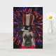 Cartão Placa Pug and Fireworks do dia 4 de julho