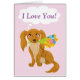 Este cachorrinho está esperando animá-lo com um bonito buquê de flores. Personalize este design clicando no botão "personalizar!" e editando o texto.