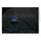 Uma lagoa escura e estática cercada por árvores sem folhas. Numa pedra no meio da água, um solteiro, brilhante, rosa azul.