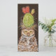 Armando a coruja intermitente com um chapéu de cacto de pera picante em cartão plano