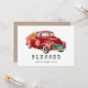 Lindo cartão de Ação de Graças apresenta caminhão vermelho aquarela carregando abóboras.