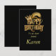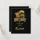 Cartão de aniversário elegante e na moda personalizável, preto e ouro.