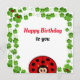 Uma bela joia feliz cercada por boa sorte, quatro capas de folha, Cartão de Aniversário. Ideal para todos. Senhora bug é um símbolo universal de boa sorte! Excelente para crianças e adultos!