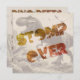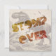 É um convite de dinossauro T-rex em uma carta plana. Dois convites lado a lado. A Frente diz: STOMP over The Back diz: Dino Deets It's a Party For (Name) (Date) (Time) (Place) (RSVP)