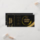 Cartão plano de convite preto e Dourado com tíquete de ouro. Concebido por Jacqueline. Personalizado por você.