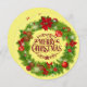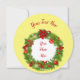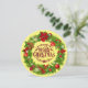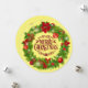 Tradicional Cartão Flat De Frota De Natal Merry. Pinheiro de Natal e Holly Wreath com Pinecones, Poinsettias, Ornamentos num Fundo Amarelo. Com o Feliz Natal Vermelho Escuro. Cartão editável de foto e texto.