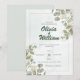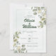 Convite de casamento com um design verde moderno e elegante. No espírito da beleza atemporal da natureza, nosso convite é adornado com o toque fresco e fragrante de folhas de eucalipto, simbolizando a força e resiliência que o amor traz à vida.