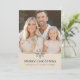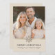 Adicione um toque de elegância aos seus cartões de natal com esta Carta Plana Feliz de Natal da Família Elegante. A frente mostra a sua querida foto de família emoldurada por um elemento design metálico escovado, enquanto uma faixa clara adornada com um delicado floco de neve diz, "Feliz Natal Te enviando alegria e prazer festivo." Vire a placa para revelar sua mensagem personalizada em um plano de fundo leve e convidando a luz. Compartilhe o calor da estação enquanto transmite os seus sentimentos sinceros: "Que esta época de Natal vos traga alegria infinita, e que o vosso coração transborde com amor e memórias queridas. Esta placa lisa oferece uma maneira pessoal e na moda para espalhar alegria de férias e conectar-se com pessoas amadas perto e longe.