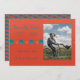 Laranja queimado e azul turquesa são cores lindas por si só e ainda mais bonitas quando combinadas. O design deste cartão plano de Save the Date inclui globos laranja queimado e azul turquesa com uma textura granulada. O verso do cartão contém um padrão de globos alternados e sobrepostos que formam formas de crescente. A frente do cartão apresenta um fundo laranja queimado com uma fileira de globos alternados no meio. Escolha sua imagem de noivado favorita para acompanhar seu pedido de Save the Date. O design do cartão plano está na orientação paisagem.
