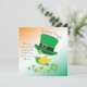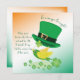 Cartão plano do Voo Sortudo do Shoemaker: Este adorável sapateiro branco está pronto para se juntar à sua Rua. Festividades do Dia do Patrick! Ele está usando um chapéu festivo de duende, segurando uma pedra de champanhe, e criando uma caneca de cerveja verde. Este design bonito e festivo é perfeito para amantes de gatos irlandeses e para quem quer adicionar um capricho à sua Rua.
