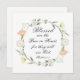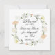 Cartão de cumprimentos quadrado plano com citação inspiradora das escrituras que retrata uma simples coroa floral com flores rosa e brancas suaves e folhagens. Apresenta uma parte das Bem-aventuranças, o amado ensinamento de Jesus no Sermão da Montanha, versículo da Bíblia Mateus 5:8, "Bem-aventurados os puros de coração, pois verão a Deus". O cumprimento, oração pode ser personalizado ou excluído para uma mensagem manuscrita.