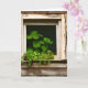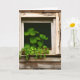 Cartão de aniversário. Plantas bonito sentadas em uma janela de madeira rústica deixam a arte ai.