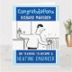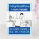 Parabéns sobre a qualificação de canalização e aquecimento. O Engenheiro de aquecimento está verificando uma caldeira a gás. Ótima ilustração de desenho animado. Personalize com sua escolha de nome. Placa de parabéns para um engenheiro ou encanador de aquecimento recentemente qualificado.