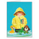 Artista: A menina do tecelão | de Jack com raincoat está nas poças com sapo, cão, e pato