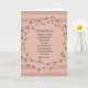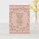 Escrevi o poema inspirador "Jornada de Cura" em 2011. Aqui estão as palavras: "Flutuo nas asas Da oração silenciosa Minha angústia, Minha raiva, Minha ambivalência, Minha aceitação Clamam aos céus Por ajuda. E ela vem." A frente deste cartão de cumprimentos exibe listras rosa pálido e rosa desbotado, com o poema em um círculo coordenado rodeado por folhas florais. As palavras dentro do cartão atualmente dizem: "Pensando em você e acrescentando minhas orações para a cura que já começou." Você pode personalizar facilmente o texto no checkout. Poema Jornada de Cura © 2011 Barbara Casey.
