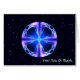 Imagens fractais roxas e azuis brilhantes que sugerem a Estrela do Norte (Polaris) e as Luzes do Norte. A imagem é sobreposta a um céu noturno, a fundo estrelado.