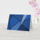 Inspirado pelo vidro colorido, este na moda geométrico contém polígonos em vários tons de azul esboçado em preto. Um triângulo azul claro desliza do canto superior direito com um conjunto de quadrangulares azuis progressivamente mais escuros e outras formas espiralando ao redor dele da luz para a escuridão. Duas formas azuis escuras movem o lado esquerdo do design original. Imagem criada digitalmente. Copyright © 2014 Claire E. Skinner. Todos os direitos reservados.