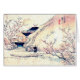 Pólos de um homem seu passado do barco um pomar de florescência do pêssego em Wuling. Há uma construção e mais árvores com uma sugestão das montanhas na distância. (De uns 1830) woodcut do século XIX original, "Uryo Togen" (pomar do pêssego em Wuling), por Ikeda Eisen. Todos os direitos reservados arte 2013 do padre do ©