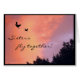 Este cartão bonito da amizade da irmã captura duas pombas que voam acima no por do sol. O céu parece estar no fogo com as nuvens em cores do arco-íris de vermelho, de alaranjado, de amarelo, de azul, a magenta e o roxo. Apenas as partes superiores mesmas das árvores estão mostrando na silhueta preta. O interior repete as cores bonitas do por do sol com duas mais pombas. O texto lê: As irmãs voam junto. Pode facilmente ser personalizado ou removido.