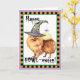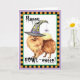 Send Halloween greetings with this card of a cute Pomeranian wearing a witch hat decorated with a silly spider. Great for kids of all ages who love Poms and Halloween. Have a Happy HOWL-oween!