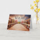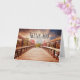 Agradeço-lhe o cartão de boas-vindas com uma ponte de madeira cênea que conduz a um caminho rodeado por árvores florestais que mudam de cor.