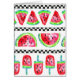 Este design é uma aguarela de fatias da melancia, metades e os popsicles com uma competência preto e branco verificam in-between. Ele IS-IS disponível em cartões, em urdidura do presente, e em bolsas do presente em Zazzle e no tecido, no papel de parede e no papel de embrulho em Spoonflower.com