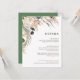 Cartão Pormenores do Casamento da Grama de Boho Protea Pampas Cartão Pormenores do casamento floral em negrito com um arranjo floral no canto superior esquerdo do convite com proteína branca, bagas roxas, folhagem de cinzas azuis e erva-pampas.