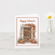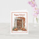 Este cartão apresenta uma imagem aquosa de uma porta acolhedora rodeada por folhas e abóboras de outono, com as palavras Feliz outono centrado acima. O dentro de saudação lê: Desejando um outono mágico cheio de calor e alegria! Que as cores vibrantes da natureza vos rodeiem e tragam felicidade para o vosso coração e para a vossa casa. Todo o texto pode ser personalizado para os seus desejos.