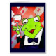 Uma pintura de um sapo vestiu-se em um vinho do bebendo do tux.
