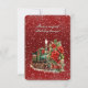A maneira mais bonita de enviar Cartões de natal para seus amigos e família. Um fundo vermelho em floco de neve com cobrir de queda de neve e um motor de trem vintage com uma frente de flores vermelhas. Quadro claro no qual a cor pode ser alterada