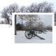 Os canhões negros da Bateria de Pedras da Batalha da Guerra Civil de Shiloh em 1862, onde quase 24.000 soldados ficaram feridos ou morreram, em contraste com o cobrir branco de neve recentemente caída no Parque Militar Nacional de Shiloh, no Tennessee e no Mississippi.