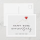 Marque o marco de um aniversário de casa querida com nosso cartão-postal caloroso, projetado exclusivamente para corretores de imóveis! Com uma ilustração adorável de coração e telhado, este cartão envia votos calorosos aos seus clientes, celebrando o amor e as memórias que eles construíram em sua casa. Personalize a parte inferior com o nome da sua empresa para um toque pessoal que reflete seu compromisso com a felicidade duradoura deles. Vire para trás e adicione uma mensagem personalizada para transmitir sua empolgação contínua e gratidão por fazer parte da jornada deles em casa. Faça cada aniversário uma celebração do coração, com um toque de calor personalizado.