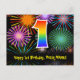 Cartão Postal 1º Aniversário – Padrão Divertido de Fogos de Arti