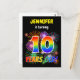A frente deste design postal de convite de aniversário animado e divertido tem um nome editável, um padrão inspirado em fogos de artifício celebratórios vibrantes, e a mensagem "10 ANOS DE IDADE!" ter um espectro colorido de arco-íris inspirou um padrão de gradação. A parte traseira contém uma mensagem personalizável que pode incluir detalhes sobre a festa de aniversário, como quando ela está acontecendo e onde ela está sendo mantida. Cartões-postais como este podem ser enviados a potenciais convidados de uma festa de aniversário que se realiza em comemoração do décimo aniversário de alguém. [~Z0000452]