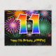 Cartão Postal 11º Aniversário – Padrão Divertido de Fogos de Art