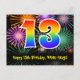 Cartão Postal 13º Aniversário – Padrão Divertido de Fogos de Art