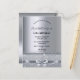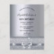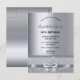 Um convite moderno, na moda e glamouroso para a 16ª festa de aniversário doce de uma menina. Um fundo metálico falso prateado com um elegante arco prateado falso, fita e brilho. O nome é escrito com um moderno script estilo escrito à mão preta. Modelos para os detalhes da sua festa.